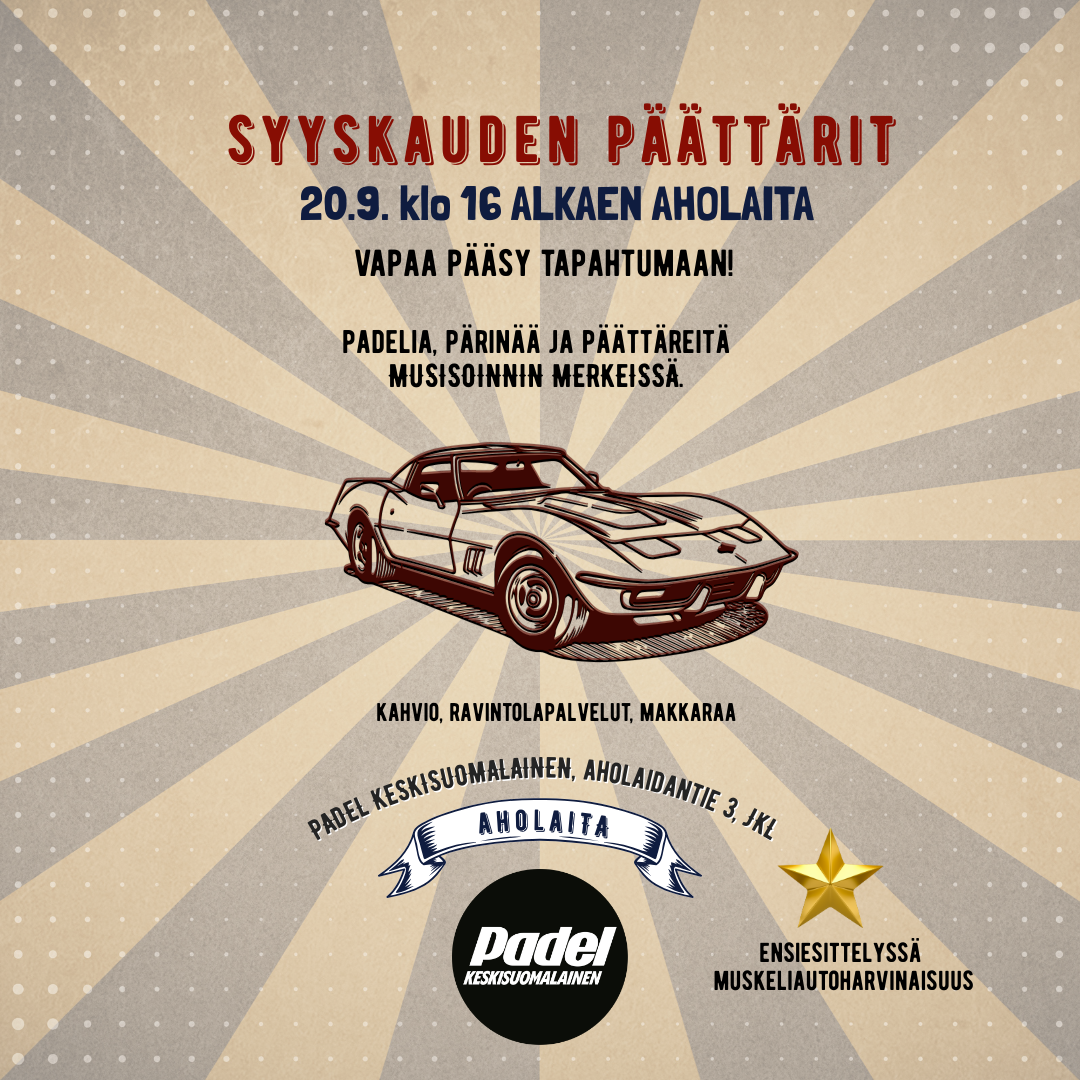 Tervetuloa kaikki harrasteautoilusta ja padelista kiinnostuneet.
