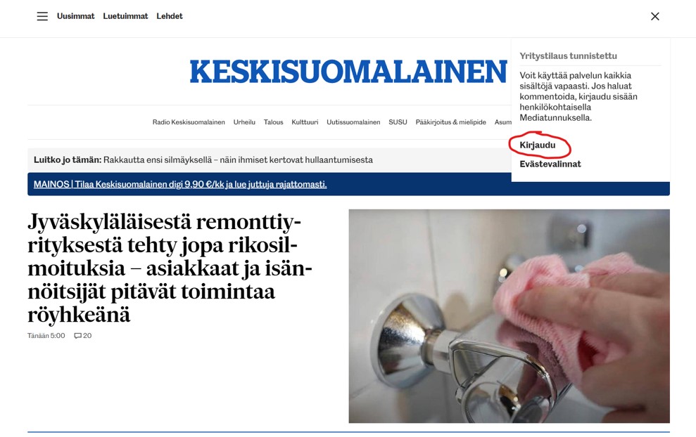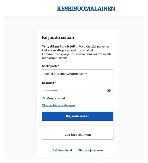 HUOM! Ensimmäisellä kerralla kaikkiin uutissivustoihin on kirjauduttava. Jatkossa selaimet muistavat tunnukset, mikäli selaimessa sellaiset ovat sallittuja.