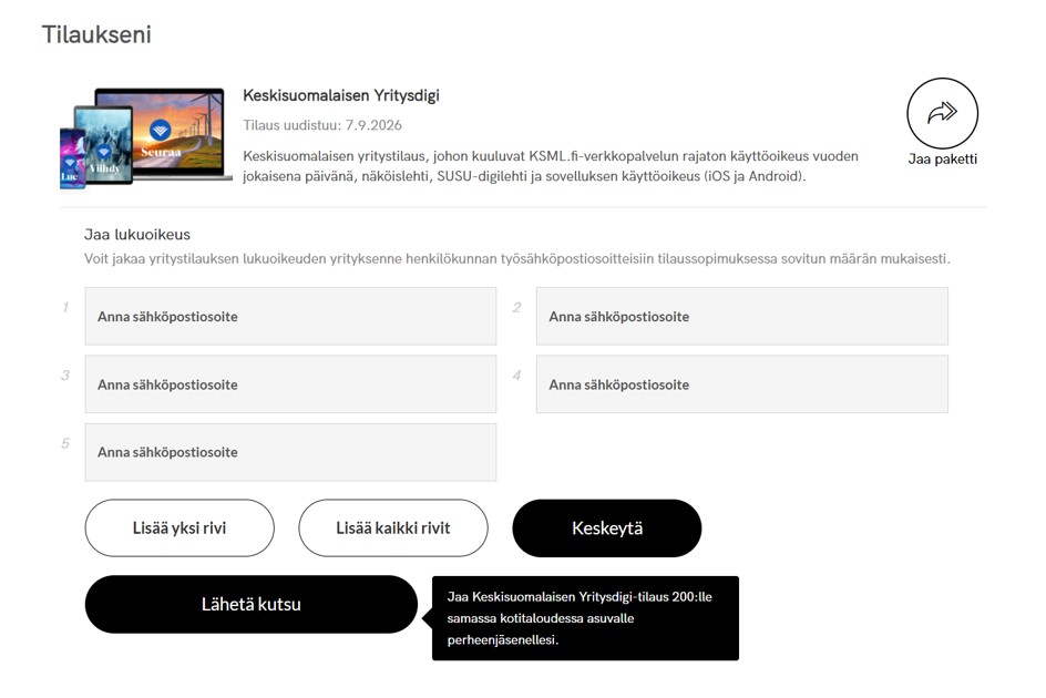3. Huomioithan että voit laittaa sähköpostiosoitteita vain ostamasi määrän.